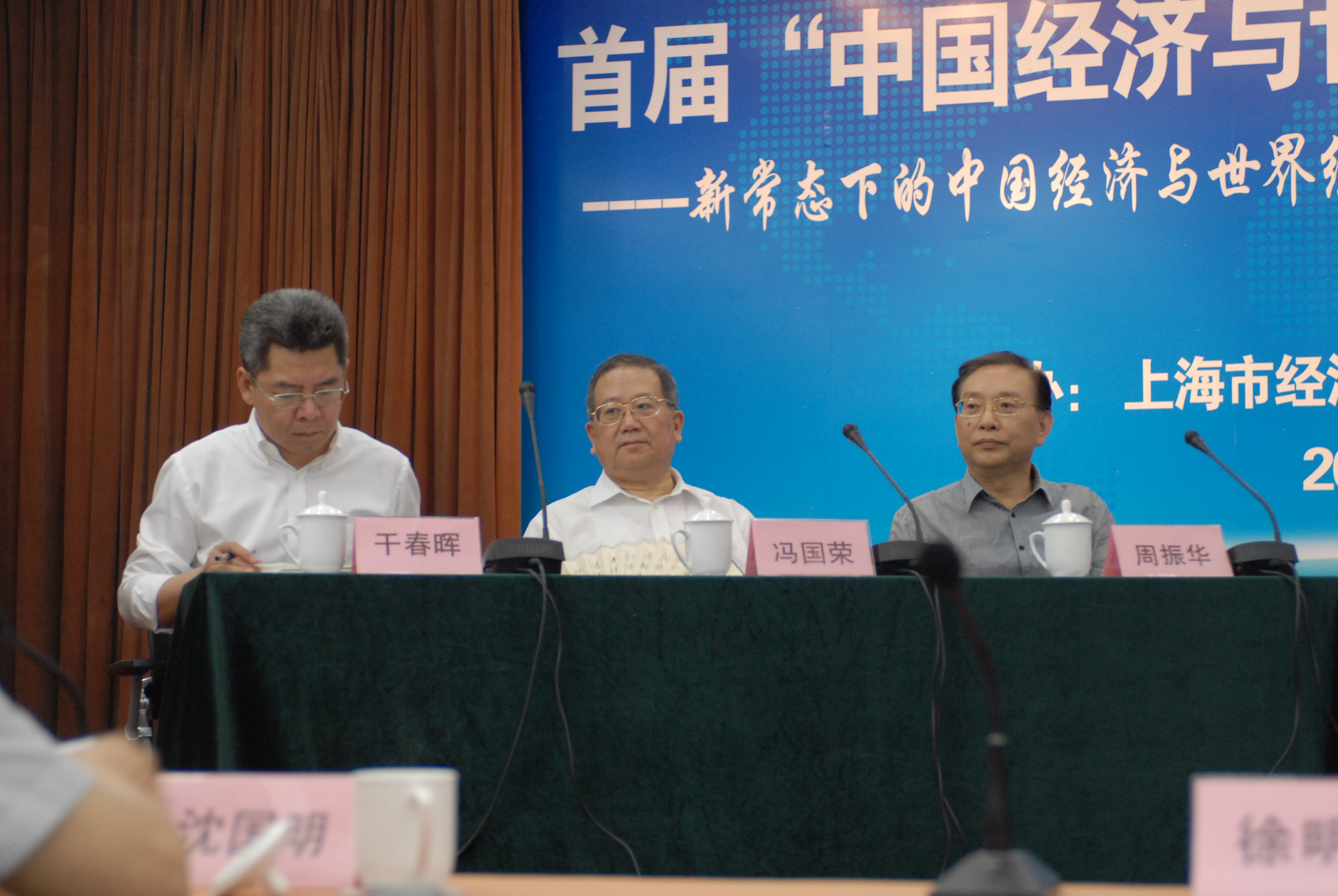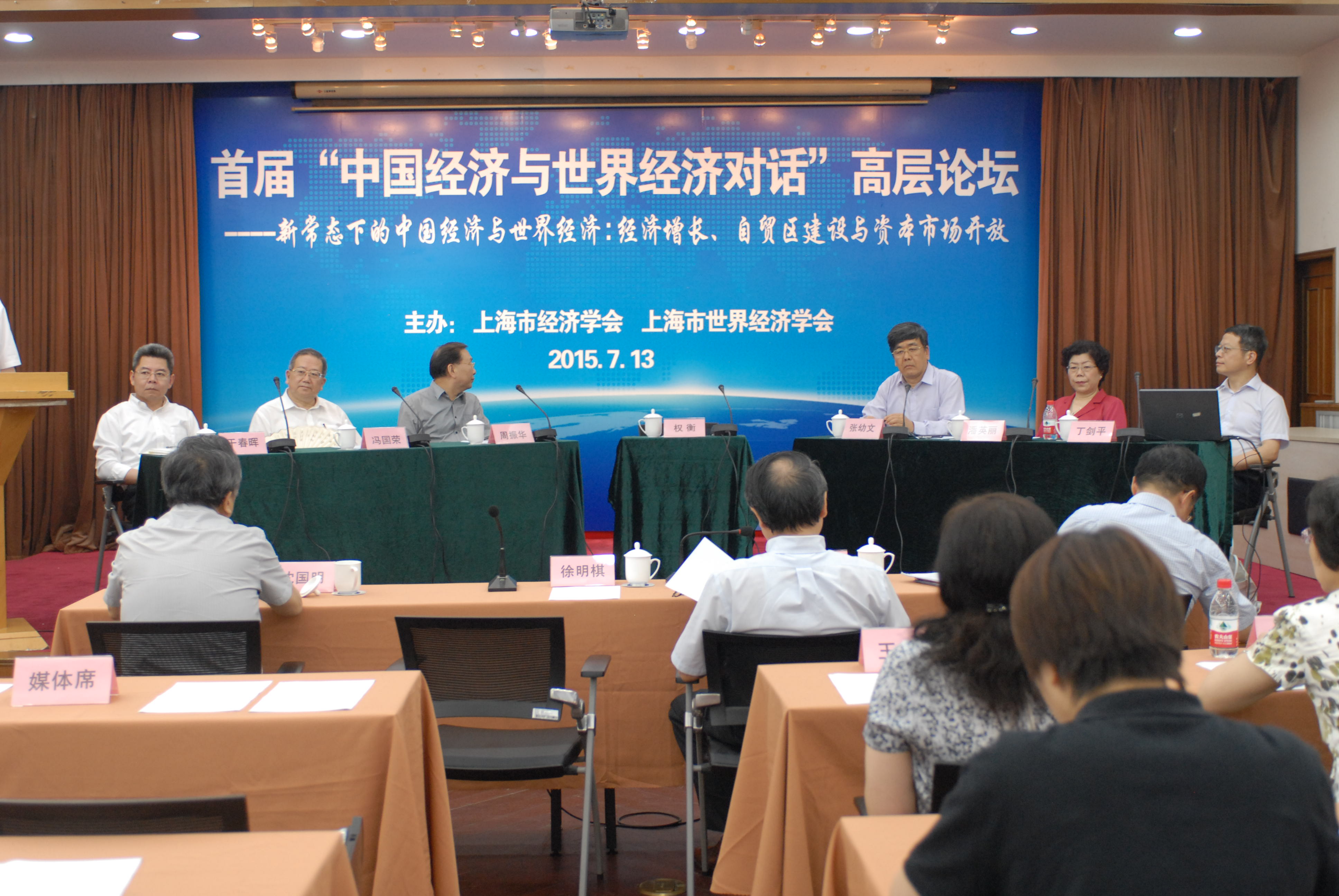 2015年7月13日在上海社科院小礼堂,由上海市经济学会、上海市世界经济学会主办的首届“中国经济与世界经济的对话”高层论坛顺利举行。本次论坛由上海市社会科学院世界经济所副所长权衡研究员主持。出席本次论坛并作专题报告的嘉宾学者有:市经济学会会长周振华教授,市世界经济学会会长张幼文教授,市经济学会副会长冯国荣博士,市世界经济学会副会长潘英丽教授,上海市海关学院副院长、市经济学会和市世界经济学会副会长干春晖教授,市世界经济学会副会长。