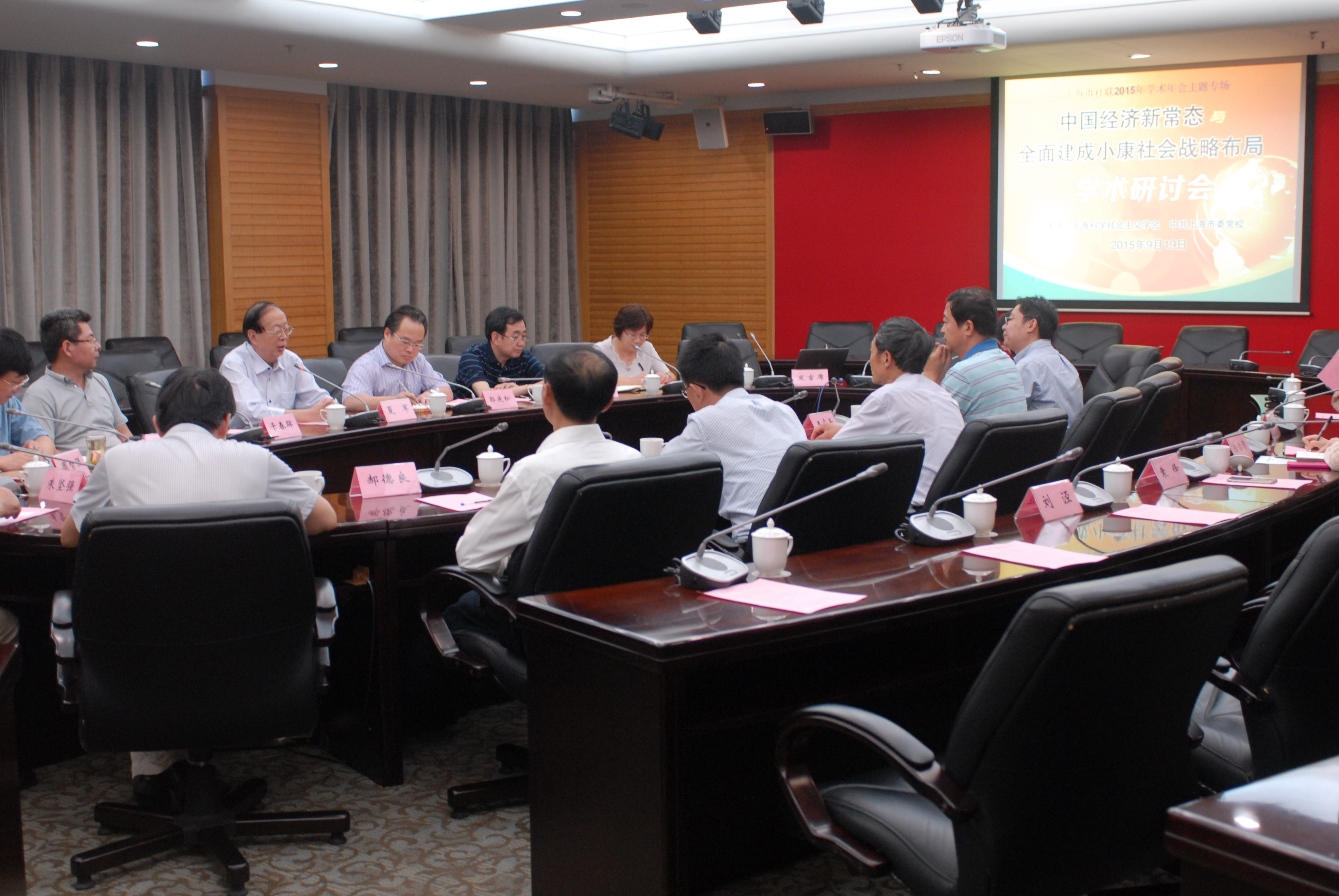 2015年9月19日在上海市委党校海兴大楼203会议室,由上海市社科院、上海科学社会主义学会以及中共上海市委党校主办的“中国经济新常态与全面建成小康社会战略布局”学术研讨会顺利举行。本次学术研讨会由中共上海市委党校科研处处长周敬青教授、上海科学社会主义学会副会长兼秘书长吴解生教授主持。出席本次论坛并作专题报告的嘉宾学者有(按照发言顺序依次排列):上海科学社会主义学会副会长孙力教授、上海经济学会副会长兼秘书长权衡教授、复旦大学中国经济研究中心王永钦教授、中共市委党校经济学教研部主任王志平教授、上海海关学院副院长(上海经济学会轮值常务副会长)干春晖教授、中共浦东新区党校胡云华副教授以及上海科学社会主义学会副会长郭庆松教授。