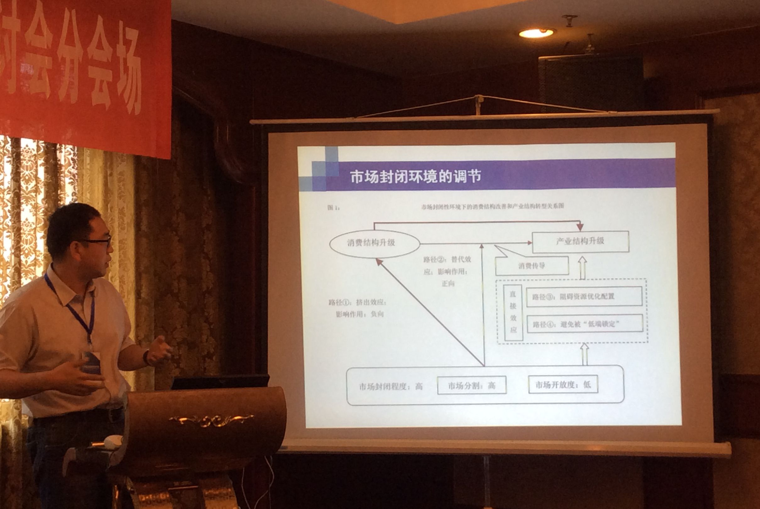 王宇博士针对市场封闭、消费结构与产业结构转型进行了研究,王宇博士通过将市场封闭引入传统研究框架之中,识别了市场封闭对产业结构转型影响的三种效应,包括挤出效应、替代效应和直接效应,发现市场分割与市场开放产生的挤出效应均大于替代效应,表现为市场封闭抑制了消费结构升级对产业结构转型正效应;市场分割和市场开放的直接效应不同,市场分割对产业结构转型的直接效应不显著,而市场开放的直接效应显著。